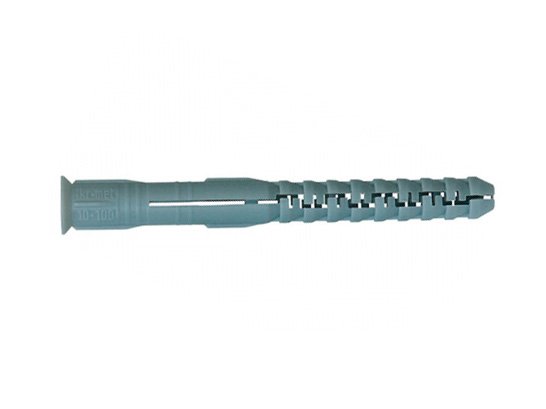 - Тело дюбеля по всей длине имеется ряд распорных уступов и лапок, они заклинивают элемент.После монтажа они не дают ему выпасть из основания.