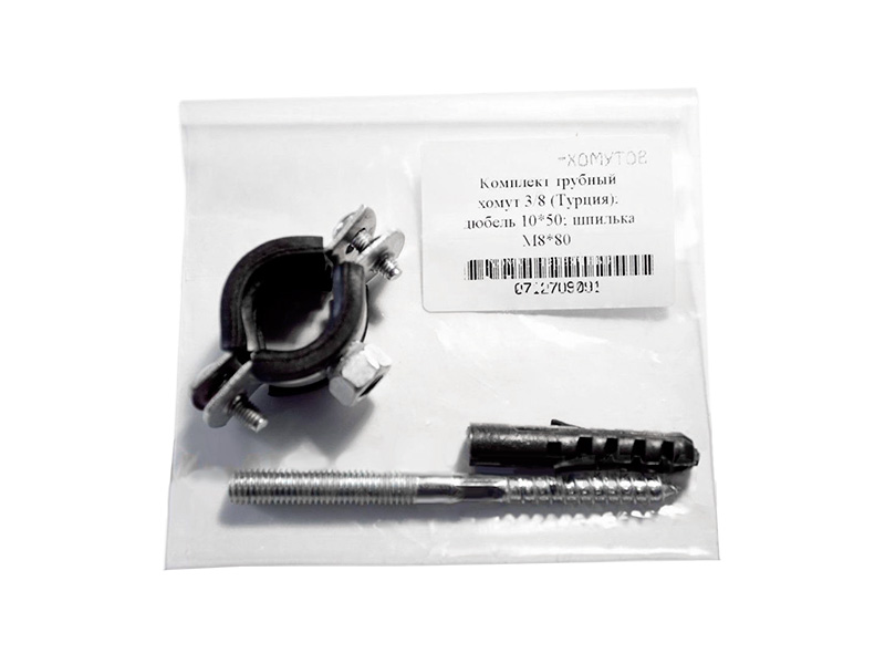 Трубный хомут в упаковке 2 М8, шпилька 8х80/гайка М8/дюбель 10*50 (1уп,) КРЕП-КОМП