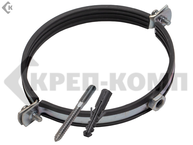Трубный хомут в упаковке 8 М10, шпилька 10х100/гайка М10/дюбель 12*60 (1уп.) КРЕП-КОМП