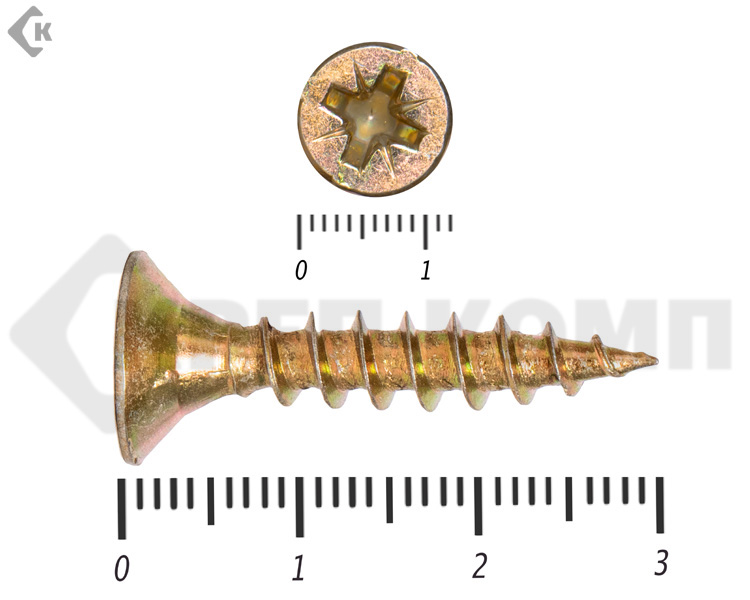 Саморез желтый цинк POZY 6х 30 Фасовка (400шт) КРЕП-КОМП