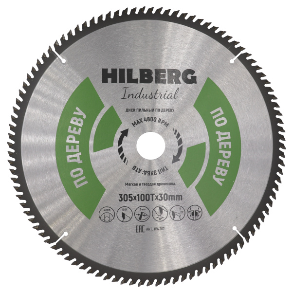 Диск 305*30*100Т, пильный Hilberg Industrial Дерево (1 шт) Hilberg
