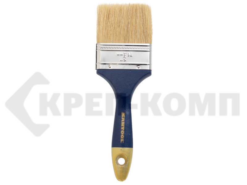 Кисть плоская 3" ЭКСПЕРТ натуральная щетина синяя деревянная ручка SANTOOL (1шт) Распродажа SANTOOL