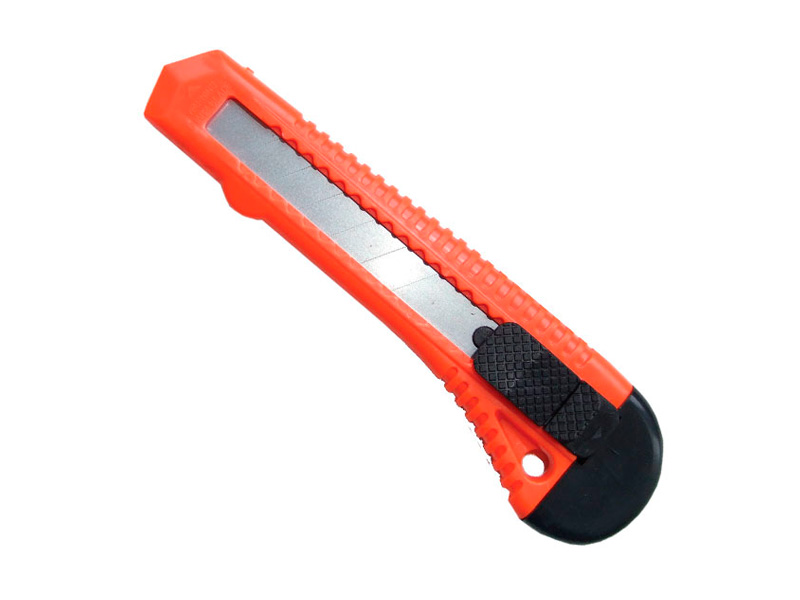 Нож изготовлен из пластика. Отламывающееся лезвие с пластиковым прижимом. Размер лезвия 18 мм. Предназначен для разрезания бумаги, картона и прочих материалов с применением небольших усилий. Замена лезвия осуществляется через хвостовую часть ножа.
