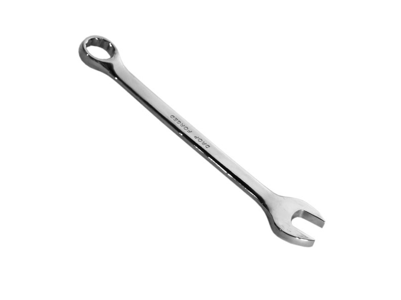 Ключ изготовлен из хромованадиевой стали, имеет полированное хромоникелевое покрытие. Профиль кольцевого зева имеет 12 граней, что увеличивает площадь соприкосновения рабочих поверхностей и снижает риск деформации граней крепежа при монтаже. Угол наклона кольцевого зева относительно плоскости ключа в 15 градусов делает монтаж более удобным. Ключ гаечный комбинированный, с открытым и кольцевым зевом предназначен для монтажа/демонтажа резьбовых соединений. Подходит для работы с любыми разновидностями шестигранного крепежа, в том числе в труднодоступных местах. Рабочий размер инструмента 29 мм.