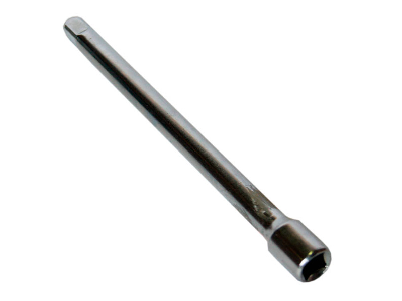 Удлинитель изготовлен из хромованадиевой стали и имеет полированное хромовое покрытие. Имеет посадочное место и присоединительный квадрат с шариковым фиксатором. Используется для работы со съемными торцевыми головками, карданными шарнирами и др. в труднодоступных местах. Длина инструмента 125 мм, насадка 1/2".