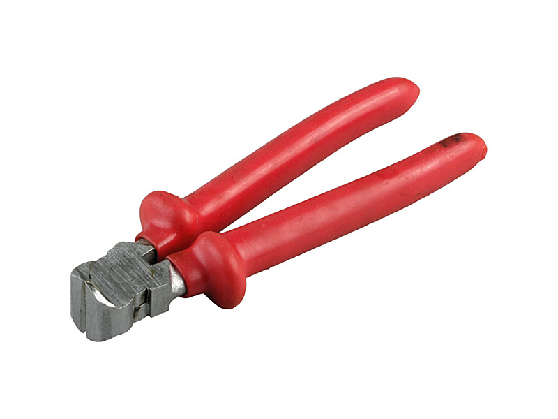 Кусачки торцевые изготовлены из стали, обладают декоративными рукоятками с изолирующим покрытием красного цвета, которое позволяет проводить электромонтажные работы под напряжением. Применяются для перерезания проводов и проволоки, а также для разрезания отдельных составляющих кабелей и для выполнения небольших резов металла (пластмассы) во время монтажа/демонтажа оборудования (подключение эл. двигателей, составление коробов и т. п.). Длина инструмента 160 мм. Производство Россия.